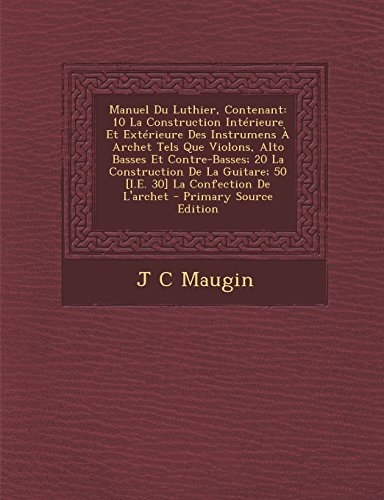 Download Manuel Du Luthier, Contenant: 10 La Construction Interieure Et Exterieure Des Instrumens a Archet Tels Que Violons, Alto Basses Et Contre-Basses; 20 ... 50 [I.E. 30] La Confection de L'Archet ... The Manuel Du Luthier, Contenant: 10 La Construction Interieure Et Exterieure Des Instrumens a Archet Tels Que Violons, Alto Basses Et Contre-Basses; 20 ... 50 [I.E. 30] La Confection de L'Archet is the first official collection of such artwork. ... Read online or download eBook Manuel Du Luthier, Contenant: 10 La Construction Interieure Et Exterieure Des Instrumens a Archet Tels Que Violons, Alto Basses Et Contre-Basses; 20 ... 50 [I.E. 30] La Confection de L'Archet in PDF, EPUB, ...
